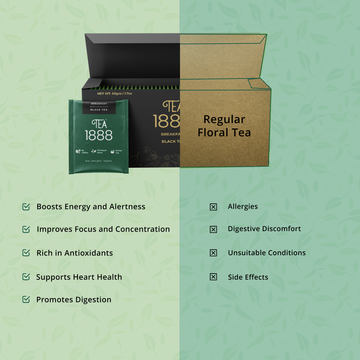 Boosts Energy and Alertness: Naturally rich in caffeine, black tea provides the perfect morning pick-me-up, helping you stay sharp and energised.